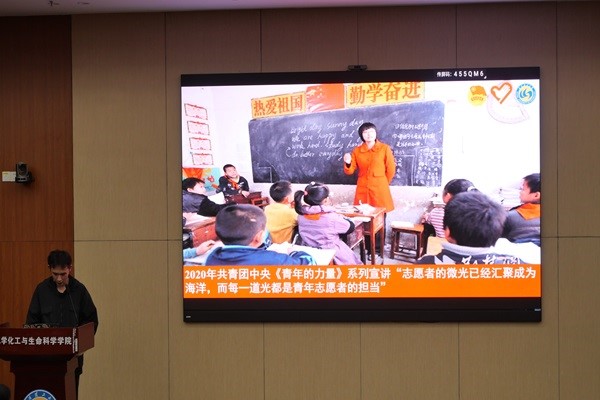 黄天赐同学作为学校青年讲师团成员和鸭王小青花服务队负责人之一,获得奉献杯“十大杰出青年志愿者”,他讲述了自己参加志愿活动的初衷信念,介绍了鸭王